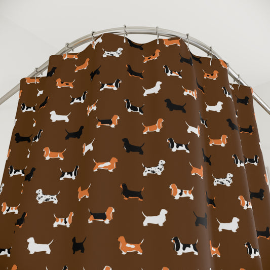 Basset Hound Pattern Shower Curtain – (brown background)