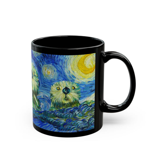 Starry Monterey Night (sea otters in the bay) - Black Mug (11oz, 15oz)